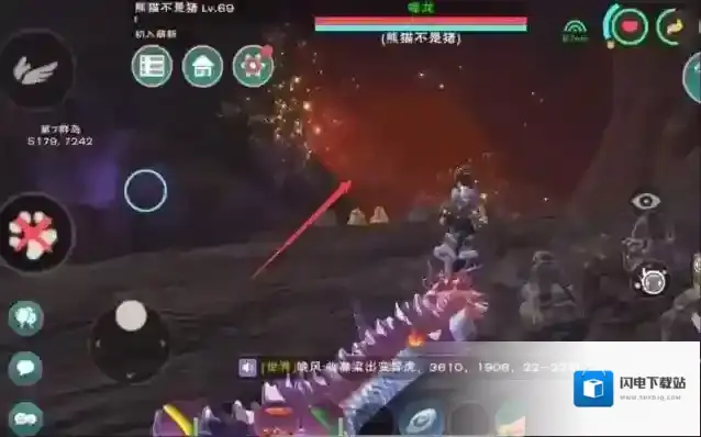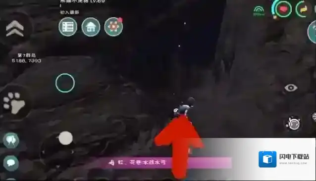 2、到达火山之后需要围着地面绕一圈,仔细寻找前往熔岩之地的入口,入口的坐标是5188,7393,可以看到地面上是有一条小裂缝的,跳进去一直往里面走就可以了。