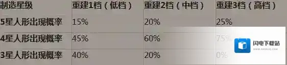 *以上概率均为平均概率,根据建造公式不同,各星级概率会有上下浮动。
