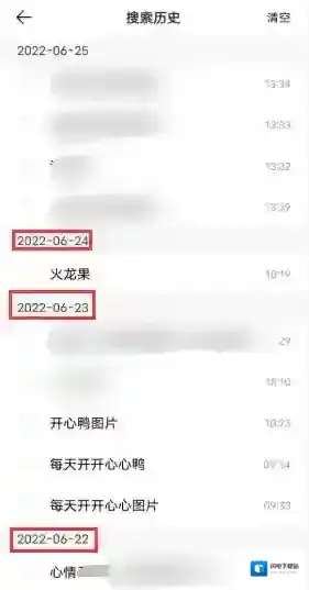 3、进入页面,就可以看到按照日期查看搜索历史记录了。
