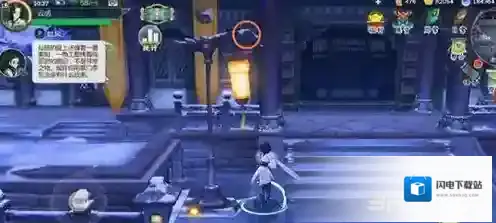 到了老君宫又让你飞屋顶,这次上屋顶要先跳上灯柱(图中红圈位置),借助灯柱跳上屋顶再开启“心眼”,等你飞上去你会发现仙鹤鸽了你,这个时候就要找掌门问问了
