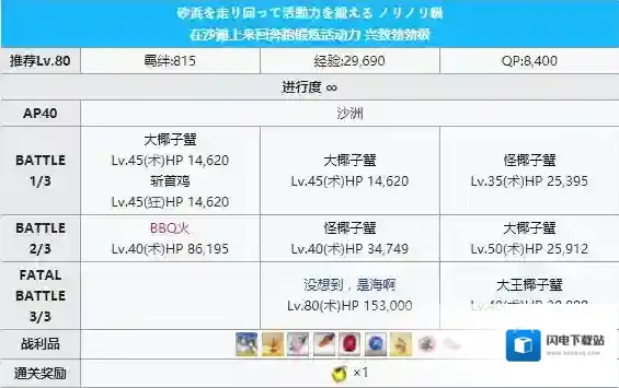 FGO泳装三期沙洲配置攻略 沙洲自由本配置掉落详解