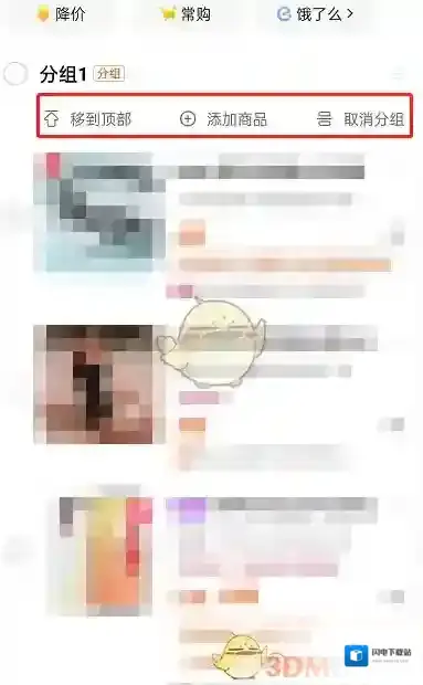 5、创建分组完成后,可以将相同店铺分组的商品移到顶部,这样就可以实现按照店铺顺序排列购物车商品了。