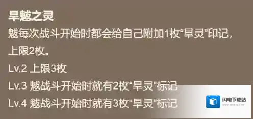 旱魃之灵:魃每次战斗开始时都会给自己附加1枚(满级三枚)“旱灵”印记,上限2枚(满级3枚)。