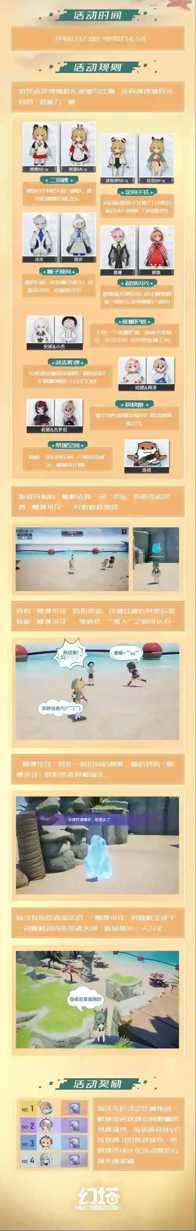 沐浴于班吉斯港的清咸海风,眼前所迎接的是……萤火!烟花!缤纷多彩的游戏项目与丰厚的奖励皆汇聚于此,「爆弹水花」、「冷热对流」、「果味火力网」、「激流竞速」……四方友人应邀而来的夏色集市绘卷,即将热意展开……