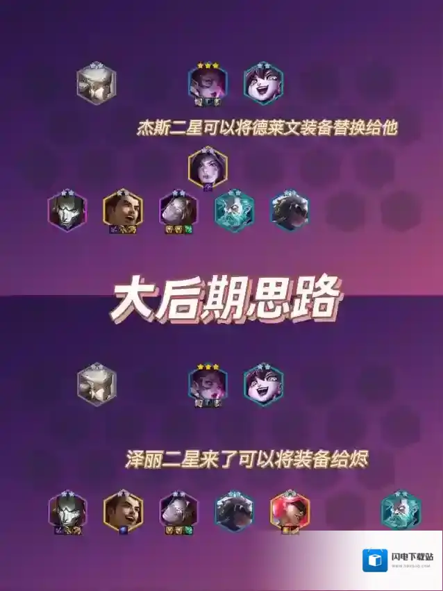 这个阵容的上限不高!如果单单二星德莱文并不能稳定拿下第一!如果后期有二星杰斯、二星卡莎可以进行装备替换!当然,烬如果三星了可以把输出装给他,如果只是二星效果并没有德莱文那么强!!