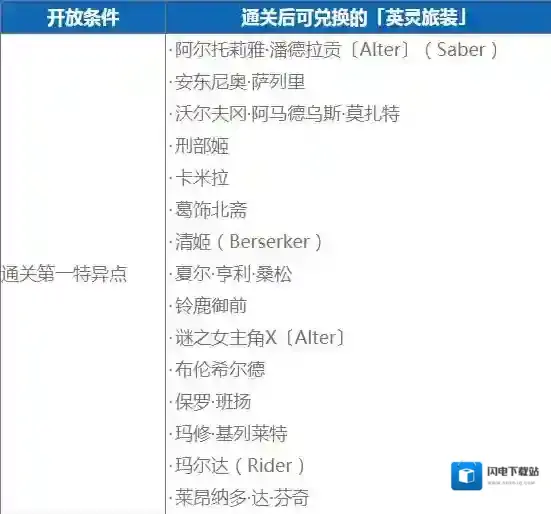 ※除了通关对应主线章节外,第二特异点至第七特异点为止的回忆关卡还需要通关前一个特异点的回忆关卡后才开放。
