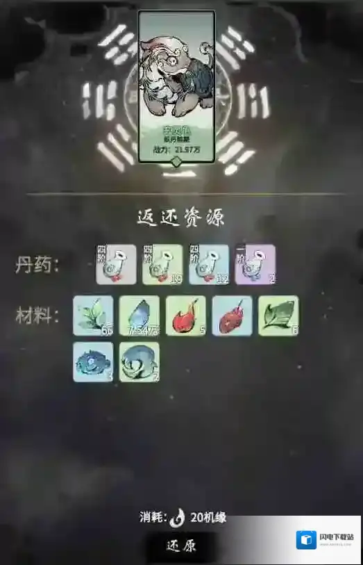 还原功能可以退回所有的灵兽培养材料,100%退回。