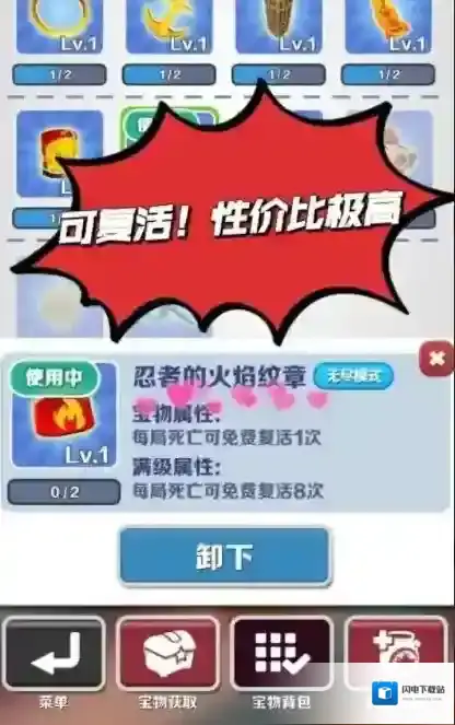 日常破纪录储备钥匙和复活宝物“忍者纹章”如p2,在不升级情况下可以免费复活一次,推荐万能滑板八万金币-风之子,不需要攒很多钥匙就能加速前进,多用滑板一!