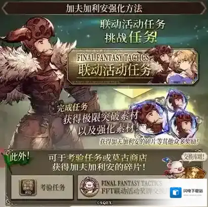 4.公测纪念结合联动FFT登录活动。可以获得活动奖牌和加夫加利安碎片,和拉姆萨兵员碎片和钻石奖励,建议初次游玩的玩家从考验任务开始游戏。