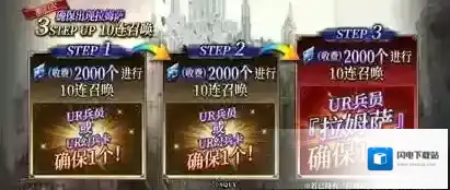 使用收费幻导石进行三次十连召唤,确保1名UR兵员“拉姆萨”。
