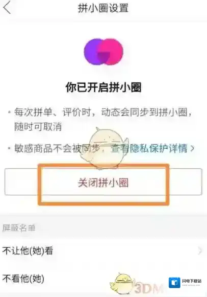 4、点击“关闭拼圈”,并选择原因(随便选择即可)。