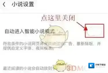 3、将“自动进入智能小说模式”设置为关闭状态即可。