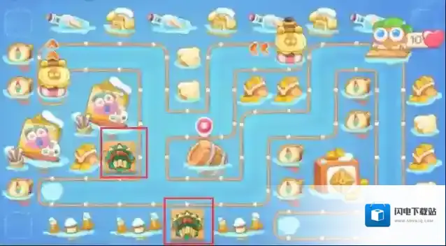 1、这关会给星星或烟花,再带一个魔法球、弓箭或船锚。