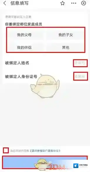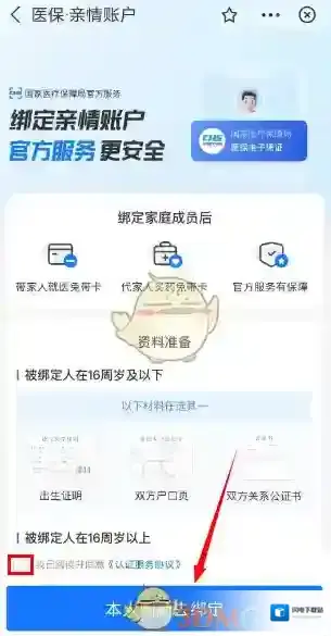 5、填写好绑定家人信息,勾选阅读协议,点击下一步即可绑定。