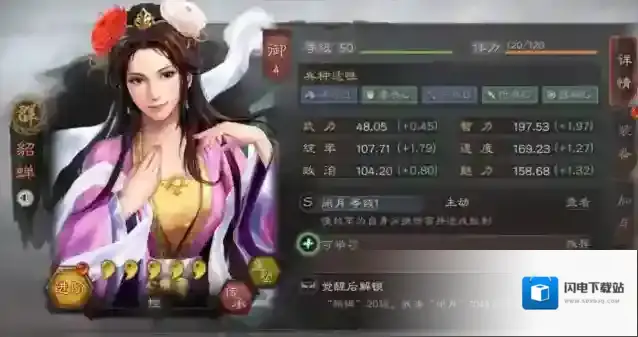 舌战群儒:敌军尝试发动主动战法时,有概率令其发动几率降低,并提升自己和友军主动战法发动几率持续1回合。(加强控制能力)