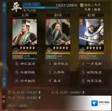 总结:这套三势贾由于放弃了回复,所以在多穿强度方面会比较一般,想要提高队伍的续航可以把夺魂挟魄换成婴城自守,最佳的配置肯定是贾诩“士别+刮骨”,基本上只要不遇到凌统吴骑,贾诩不会有太高的战损,刮骨疗毒也能更好的保住左慈,配合混乱和赵云的稳定输出,虽然容易战平,可也有机会打出上万的战功!目前左慈各种体系又火了起来,主要还是吴骑少了,规避和贾诩的混乱配合好,队伍的上限还相当的高,算是平民白板逆袭满红大佬的一队利器!