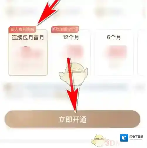 3、接着选择需要开通的会员时长后,点击立即开通选项。