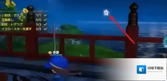 8、走到图中的位置,往右看,鸟居上有颗星星,跳过去捡。
