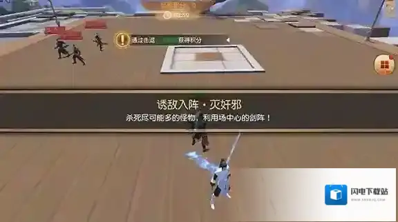 第一关进去很简单,一开始就是杀怪,这个最好你先全场跑一圈引怪到场中间,那里定时刷出来的剑阵会帮助你杀怪,很快的。当然土豪大腿们可以直接杀。