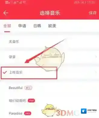 4、在本地手机音乐中,选择要设置的背景音乐,点击右上角“完成”就上传完成了。