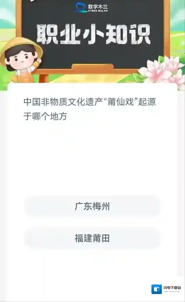 解析:莆仙戏是一种源远流长的中国非物质文化遗产,它诞生于福建莆田地区,是福建传统戏曲剧种之一。莆仙戏以莆田方言为主要语言,以民间歌谣和祭祀仪式为主要内容,展现了莆田人民的生活和信仰。