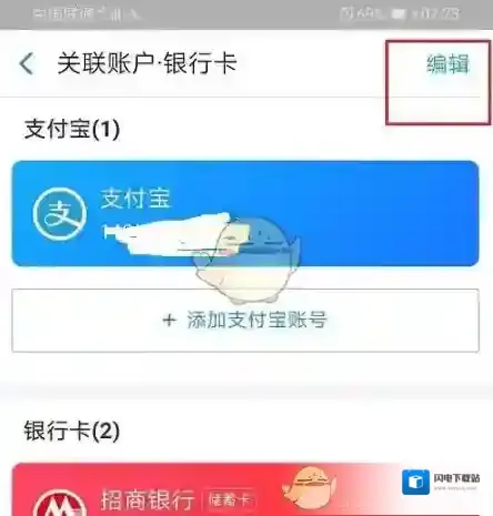 3、进去账户银行卡界面,可以看到关联的银行卡,点击编辑,如下图所示: