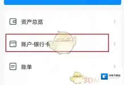 2、进去我的界面,点击账户银行卡,如下图所示: