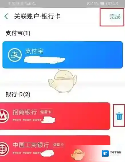 4、选择要解绑的银行卡,点击删除图标就完成了,如下图所示: