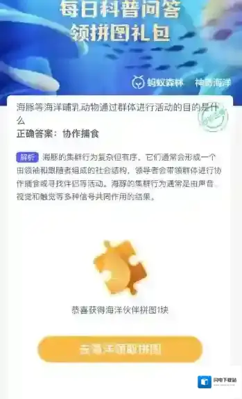 海豚等海洋哺乳动物通过群体进行活动的目的是什么
