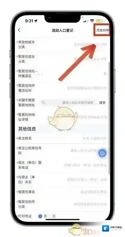 完成申请后可在“流动人口登记”功能界面的右上角点击“历史办件”查询审核状态,在审核通过后点击该条记录可进入详情界面,获取审批单位信息,若需流动人口登记凭证可前往开具。