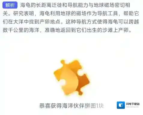 解析:海龟的导航能力与地球磁场特性最为相关!海龟的长距离迁徙和导航能力与地球磁场密切相关。研究表明,海龟利用地球的磁场作为导航工具,帮助它们在大洋中找到产卵地点。这种导航方式使得海龟可以跨越数千公里的海洋,准确地返回到它们出生的沙滩上产卵。
