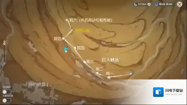 传送巨人峡谷图中锚点,往地图的西南方向飞,利用四叶印,前往下方遗迹
