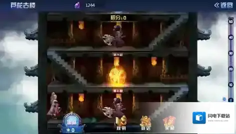 点击楼层的守卫将会出现选择对手界面,玩家可根据自己的战力挑战对手,最后进行布阵出战;挑战胜利后玩家可获得积分与五角星。达到一定积分可在芦花古楼界面中的“奖励”中领取金币、经验、守护灵碎片哦;五角星可用于玩家购买增益。