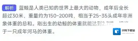 解析:地球上的动物大致就分为海洋动物与陆地动物两大类别,在陆地动物中,非洲象属于体型最大的动物,成年雄性非洲象可以达到4.1米地高度,体重更是能达到13.5吨,大约相当于10辆普通家用轿车的重量。而海洋动物中,自然是蓝鲸最大,同时它也是地球上公认的最大哺乳动物。蓝鲸的体长超过了33米,体重181吨,一只蓝鲸就相当于13头非洲象的重量。