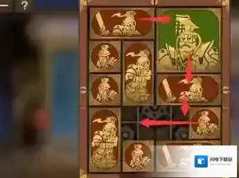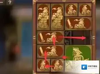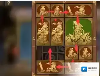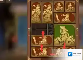 1、先将右下角的正方形向左移动到底,然后上方的长方形和将军都向下移动,左上角的长方形向左移动。