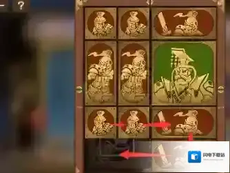 6、最后中间的长方形向右移动,其下方的正方形向上移动,左下角的正方形竖直排列,这样将军就可以向左走出去,玩成本关。