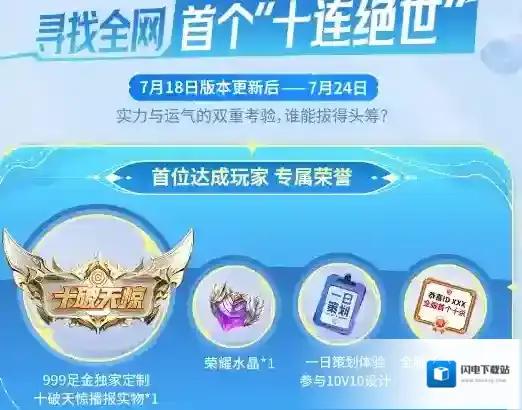 2、在7月18日版本更新后-7月24日期间,首位获得十破天惊的玩家会获得专属荣耀。