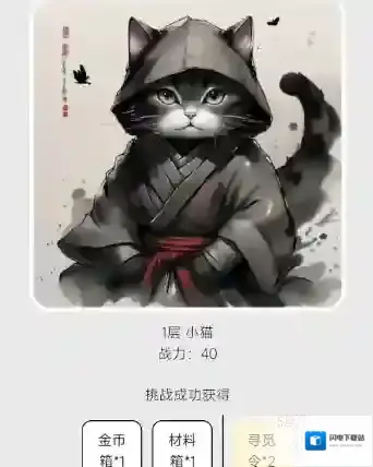 2、其中成功通过第一层挑战(小猫战力:40)就能获得金币箱*1奖励。