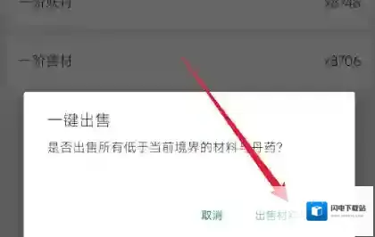 4、最后只需点击弹框右侧的出售材料与丹药就能出售全部低于当前境界的道具了。