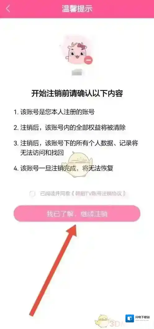 4、勾选已阅读并同意协议,点击我已了解,继续注销即可。