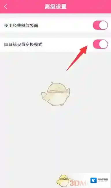 4、找到随系统设置变换模式,开启右侧开关即可。