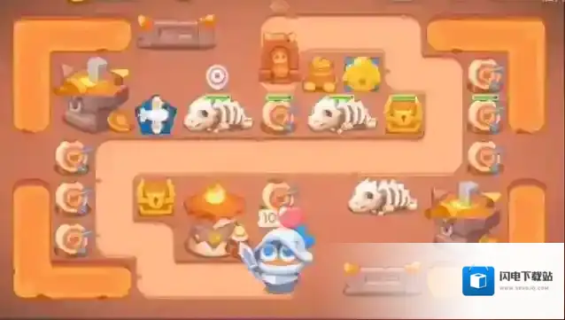 2、清理完之后,在元宝的下面再放置一个元宝和一个章鱼,锁定飞机下面的宝箱。