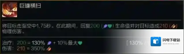 将目标击至空中1.75秒。在此期间,回复(130%/150%/170%法术强度 + 10%最大生命值)生命值并对目标造成(350%攻击力)物理伤害。