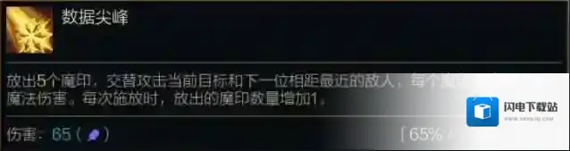 放出5个魔印,交替攻击当前目标和下一位相距最近的敌人,每个魔印造成(65%/100%/155%法术强度)魔法伤害。每次施放时,放出的魔印数量增加1。
