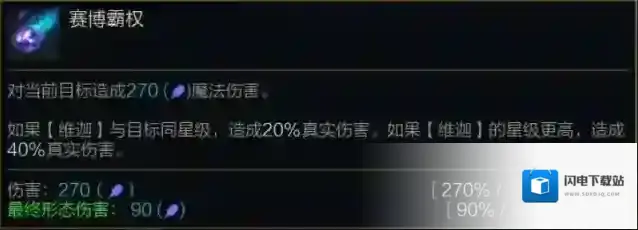如果维迦与目标同星级,造成20%真实伤害。如果维迦的星级更高,造成40%真实伤害。