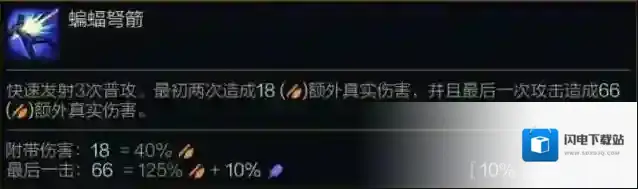 快速发射3次普攻。最初两次造成(40%攻击力)额外真实伤害,并且最后一次攻击造成(10%/15%/25%法术强度 +125%攻击力)额外真实伤害。