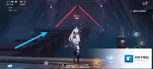 4、升降台会直接把你弹上去,要注意控制跳跃时间。需要清理一波小怪。第一个宝箱就在刚才把我们弹上来的入口背后。清理完小怪以后走到升降台上。我们需要用远程攻击手段,从那个孔洞中打到对面石柱。石柱背后就是下一个入口。