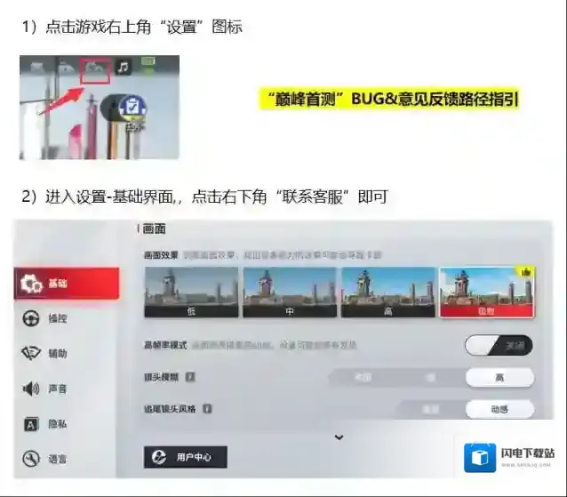 A:车手可以通过以下2种方式反馈问题或建议1-游戏内,右上角设置-基础-联系客服,推荐各位车手优先采用此方式反馈哦。游戏内详细指引如下