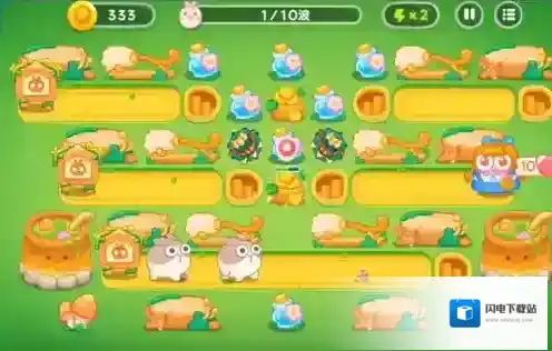 10、最后一波全部塔炮升级完毕,障碍物和兔子是一起攻击的。