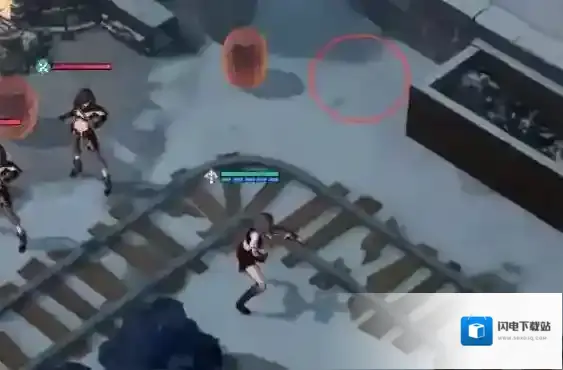 6、最后剩一个壮汉,我们走到下图所示位置,勾引他到铁轨,通关